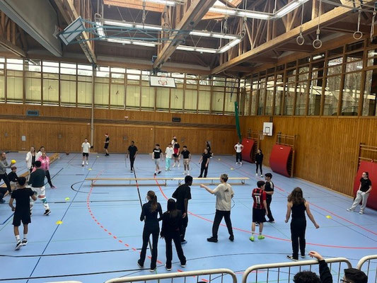 Am 5.12.2025 stellten alle Klassen beim Nikolausturnier in der Dreifachturnhalle ihre sportlichen Fähigkeiten unter Beweis. Während die höheren Klassen sich beim Basketballturnier heiße Kämpfe um jeden Korb lieferten, maßen unsere 5.-7. Klassler sich beim Völkerballturnier. Fair play und Teamgeist waren dabei die obersten Gebote.