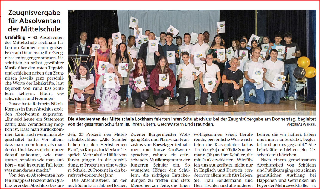 Lochhamer Entlassfeier der AbschlussschülerInnen